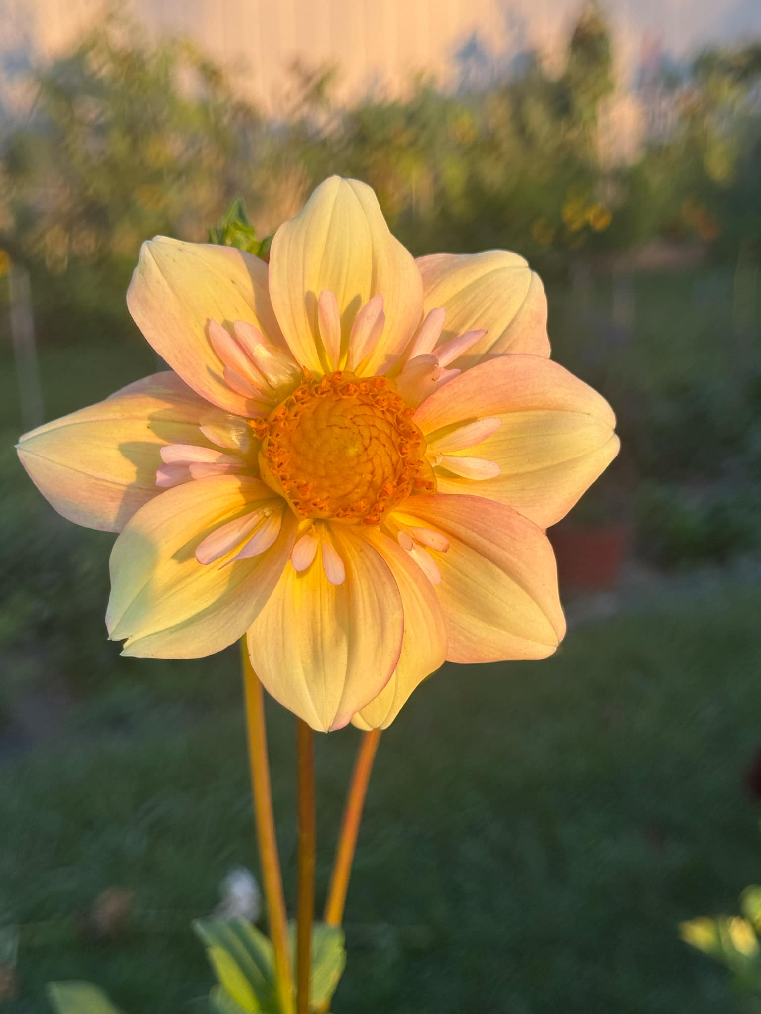 Soft, romantic and full of charm, the Apple Blossom dahlia features delicate petals in creamy white and blush pink with hints of pale yellow at the center. Each flower radiate a gentle watercolor- like gradient that pairs beautifully with both bold and pastel collections.